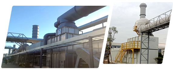 工藝沸石轉輪+RCO 技術難點:涂裝噴漆廢氣(濃度500mg/m3),漆霧較多,產線不穩定生產 方案:廢氣經漆霧過濾器過濾后進入四級過濾,過濾去除漆霧顆粒物后進入沸石轉輪濃縮后進入RCO氧化處理 結果:排放值20-29mg/Nm3